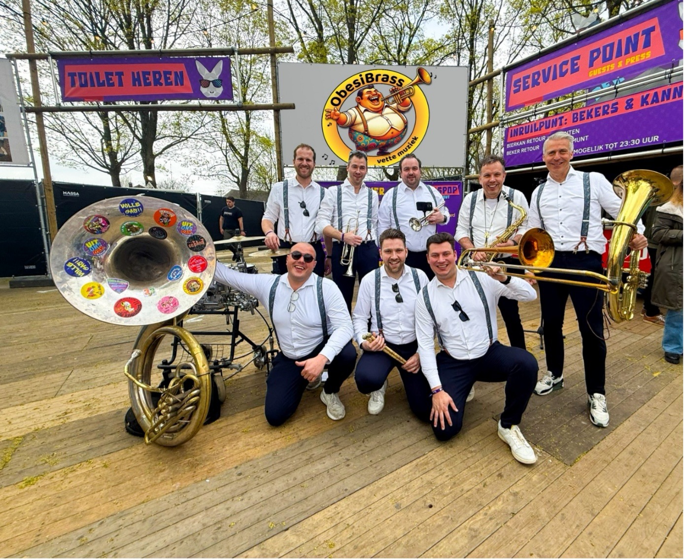 ObesiBrass staat voor één ding: _vette muziek_ . Met acht energieke muzikanten uit Made brengen we een onweerstaanbare mix van funky hits en verrassende klassiekers. Van _Hit Me Baby_ en _Because I Got High_ tot _Killing Me Softly_ en de vibes van _Harry Styles_, alles krijgt bij ons een eigen, dampende brass-saus.
